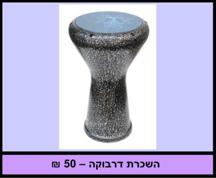כיסאות , שולחנות , גזיבו , גנרטורים, רמקולים , מיקרופונים , מסך ומקרן , מצנן אוויר , ציוד תאורה.